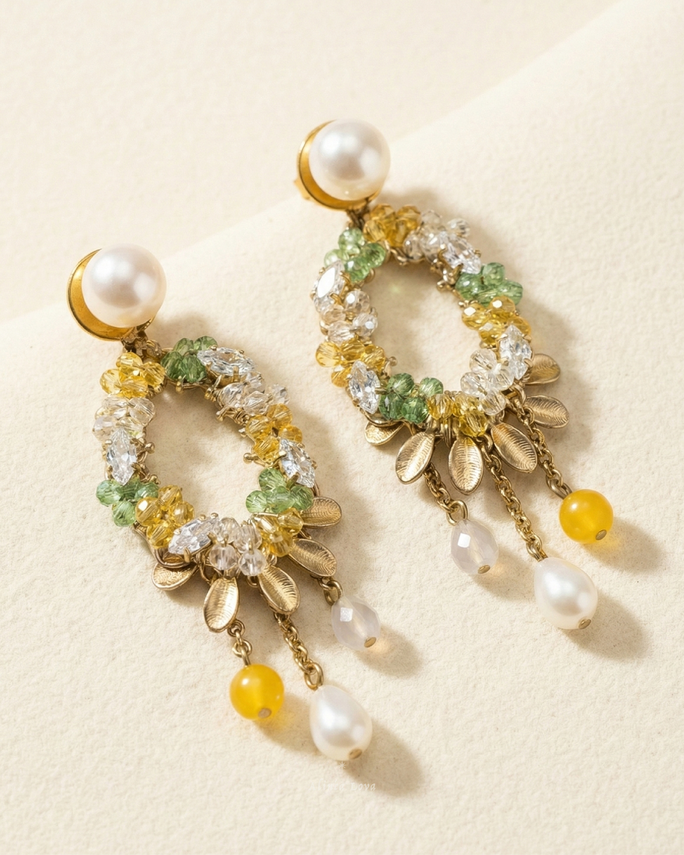 • 晶石與珍珠錯落排列,呈現自然卻精緻的節奏