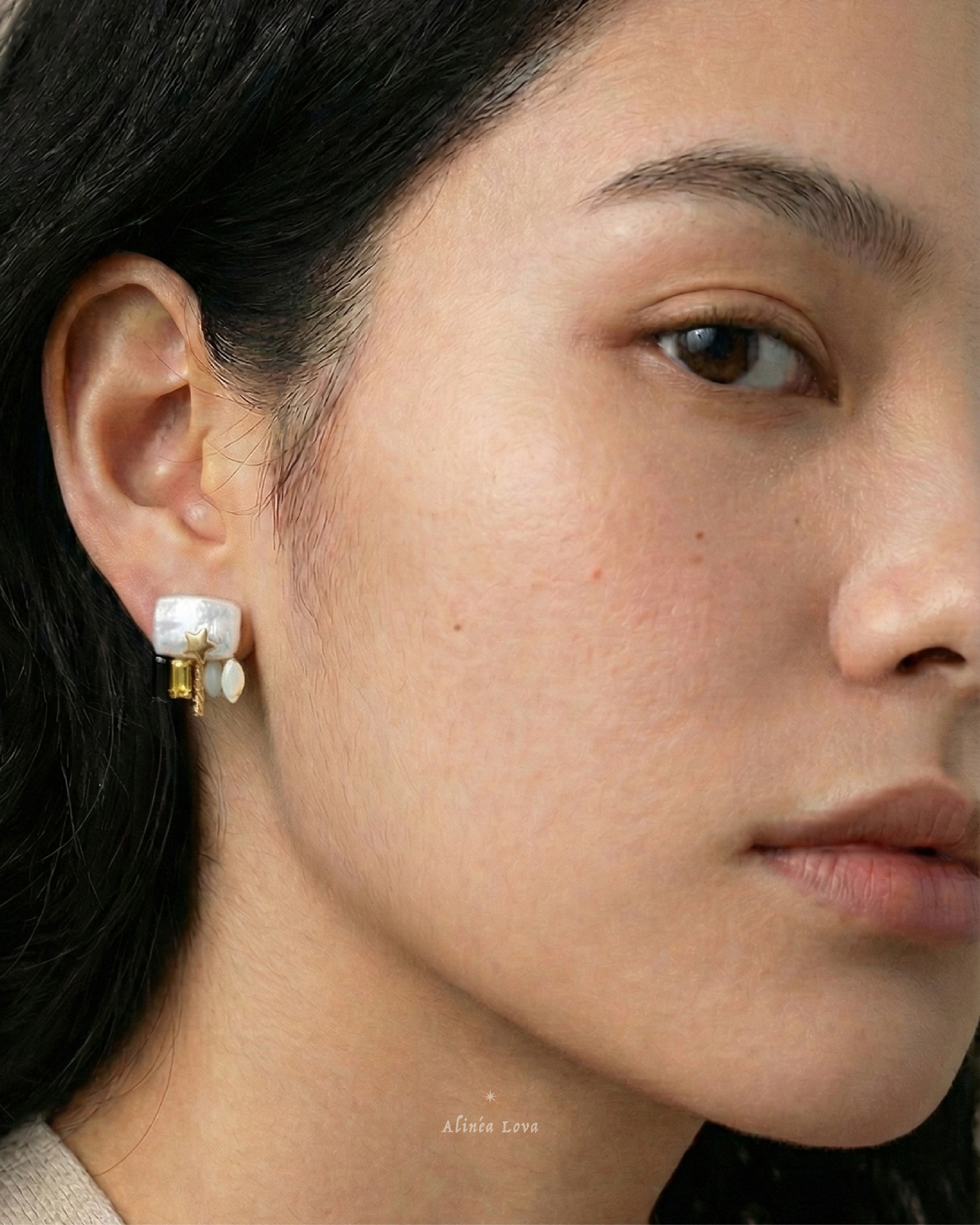 這副耳環的靈感,來自那些不在夜空正中央的星。